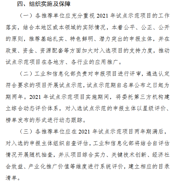 (二)推薦單位。各地工業(yè)和信息化主管部門(mén)(大數(shù)據(jù)產(chǎn)業(yè)主管部門(mén))、中央企業(yè)集團(tuán)等有關(guān)單位負(fù)責(zé)組織推薦,并于2021年3月14日前登錄申報(bào)系統(tǒng)確認(rèn)推薦名單。