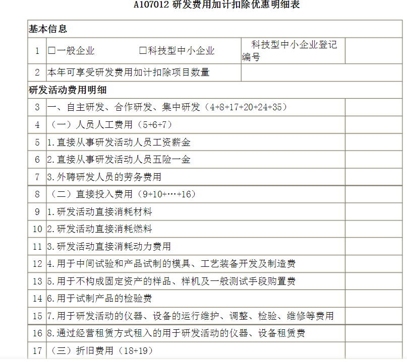 (四)2017、2018年研發費用加計扣除優惠明細表(打印后加蓋公章,無需驗原件);